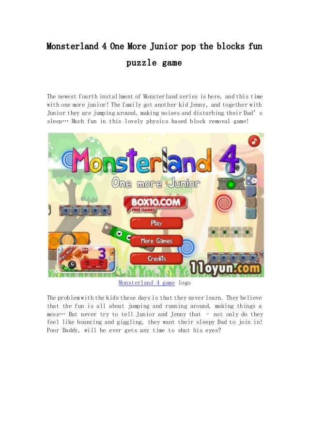 Monsterland 4 One More Junior Pop The Blocks Fun Puzzle Game from image.slidesharecdn.com We did not find results for: Maybe you would like to learn more about one of these? Check spelling or type a new query.